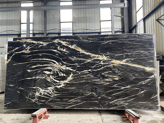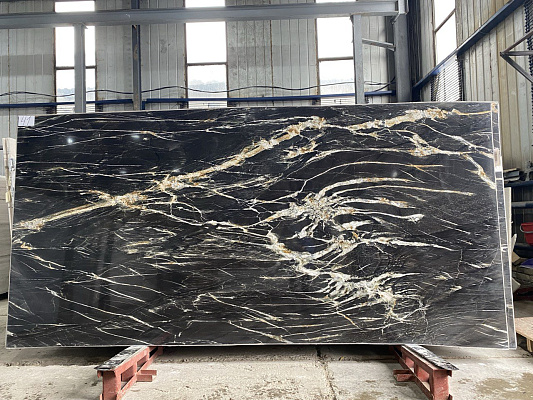 На этом фоне располагается множество длинных и белых прожилок. Благодаря этому вырисовывается какой-либо рисунок. На каждом слэбе он разный. Мало того, на одном и том же камне люди видят разные рисунки. Поэтому каждый задумывается о своем. Он идеально подходит для отделки гостиной и рабочего кабинета.
